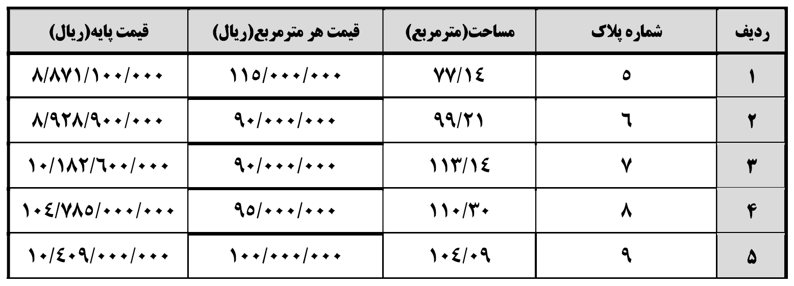 آگهی مزایده 5 قطعه زمین تجاری ، شهرداری باب انار